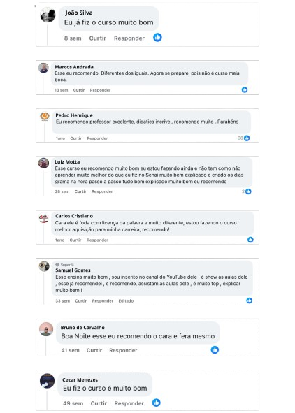 São mais de 23 módulos, com mais de 29 horas de conteúdo e mais de 600 vídeo aulas práticas, sem enrolação!