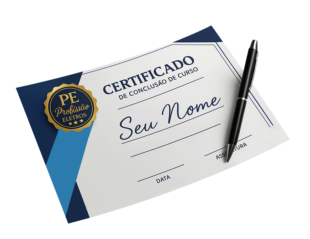 Aqui na PROFISSÃO ELETROS, todos os alunos passam por um processo de Conclusão do Curso, e com o certificado você pode apresentar em uma empresa do ramo e conseguir um trabalho até 10x mais rápido do que alguém que não tem um certificado!